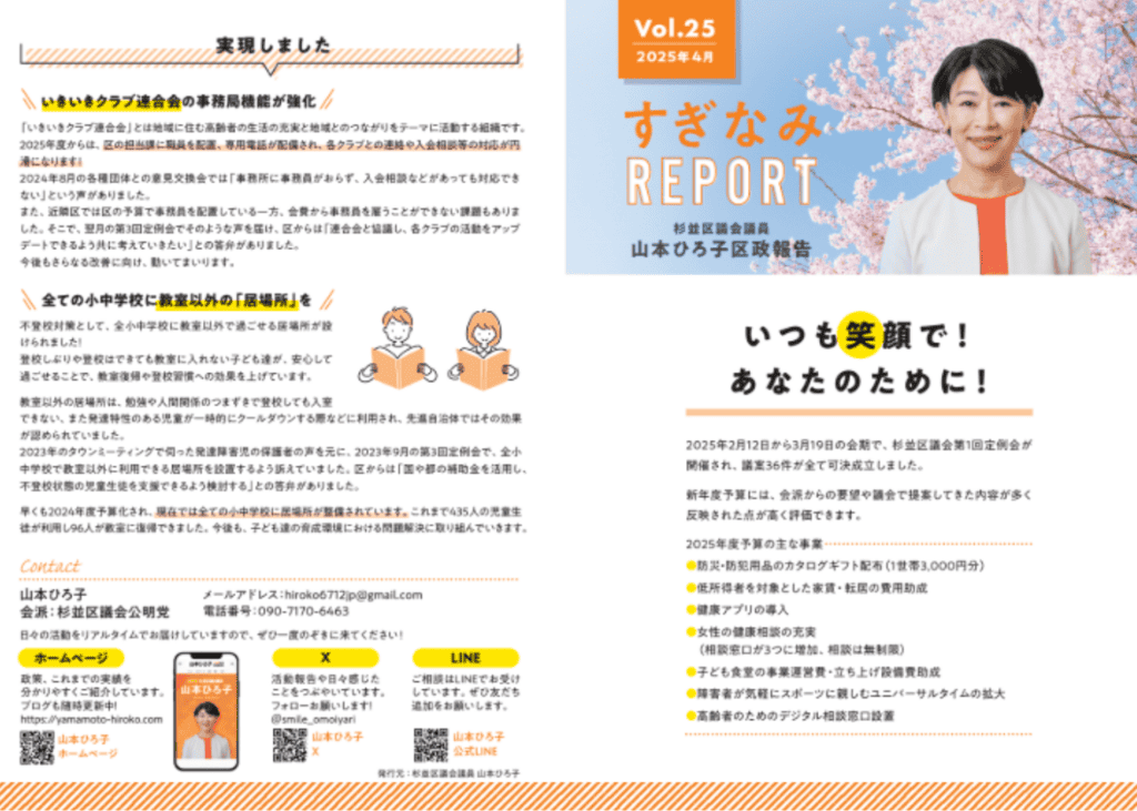 定期的に発行している「山本ひろ子 区政報告書」の最新号vol.25が完成しました。